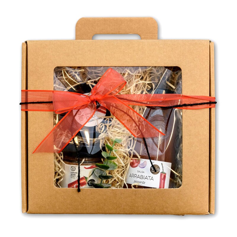 Découvrez la « Boîte épicée », le cadeau idéal pour tous ceux qui aiment le piquant ! Ce coffret cadeau soigneusement composé contient trois produits exquis qui donneront à chaque plat le coup de pouce piquant nécessaire et raviront les papilles !
